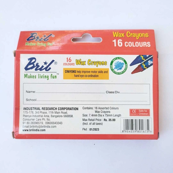 Bril Wax Crayons 16 Colours 1U