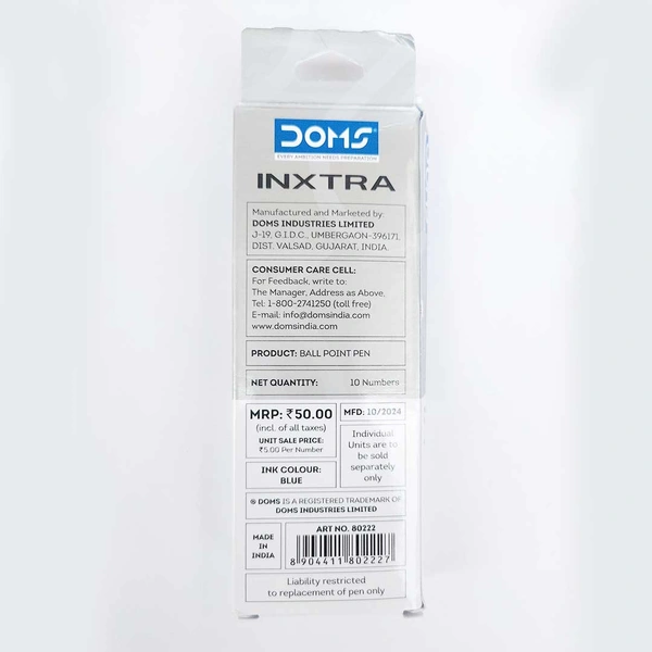 Doms Inxtra Ball Pen Blue 10 Set