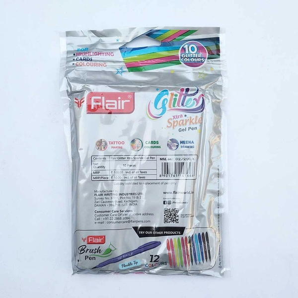 Flair Glitter Xtra Sparkle Gel Pen 10 Colours 1U