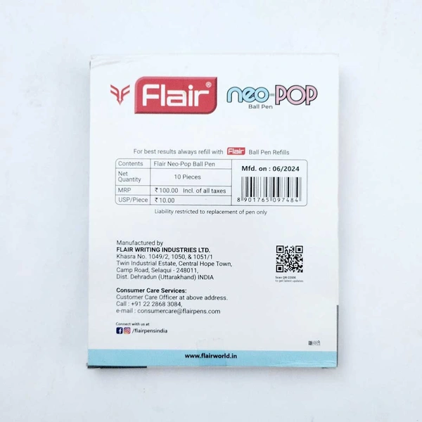 Flair Neo Pop Ball Pen Black 10 Set
