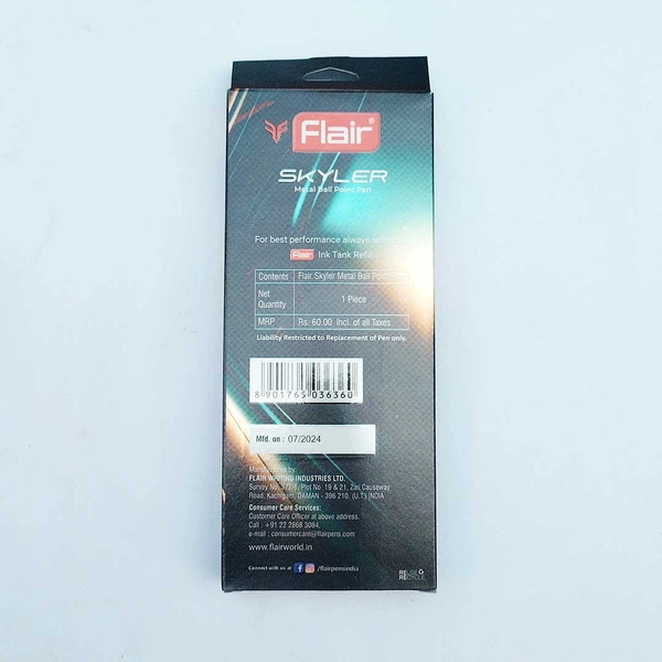 Flair Skyler Metal Ball Pen Blue 1U
