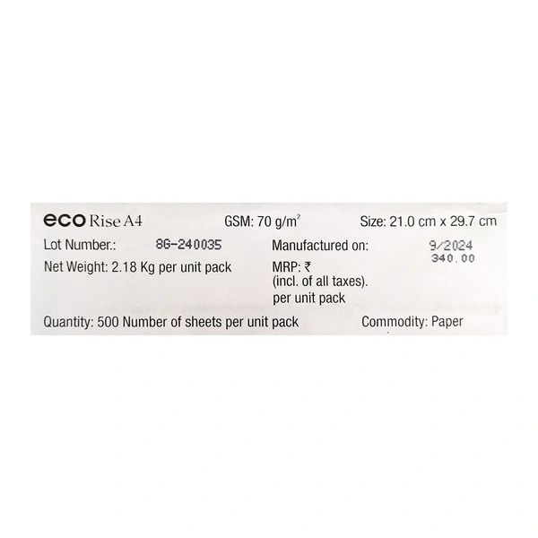 Eco Rise Copier Papers A4 70 GSM 500 Sheets