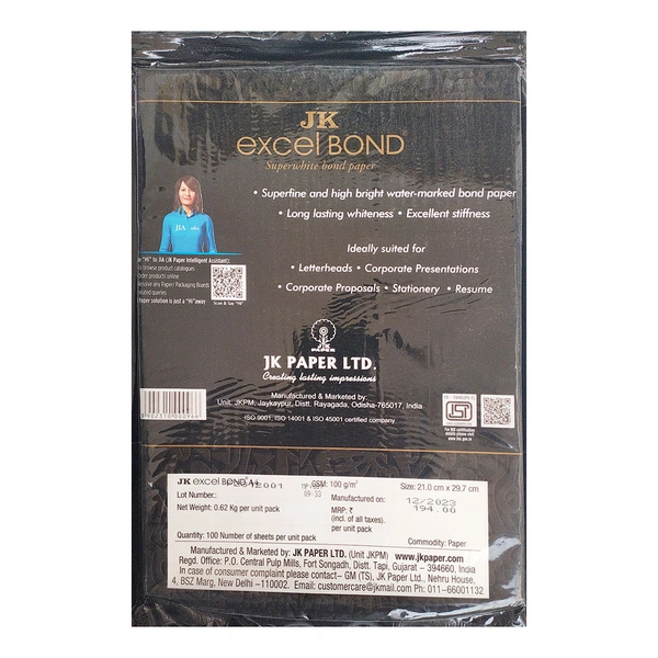 JK Excel Bond Papers A4 100 GSM 100 Sheets
