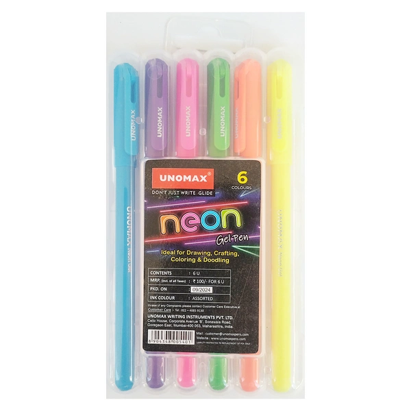 Unomax Neon Gel Pen 6 Colours
